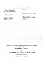 A two-day conference was held at Brown University and Providence College, May 3-4, 1932, with over 1,000 people reported to be in attendance, listening to local and national speakers and participating in round-table discussions on topics such as stereotypes, religious intolerance, university quotas, and intermarriage. At the opening of the Providence College session, one of the speakers, Rabbi Isaac Landman of Brooklyn remarked, “It is a new thing in the religious life of the world. Protestants, Catholics and Jews under a Dominican roof seek to understand each other’s religions in order to lay open the causes of inter-religious prejudices so that by understanding we may dissolve them and create bridges of mutuality.”(The Providence Visitor, 5/6/1932) Participants also visited local churches and synagogues, which was extraordinary for the time. In December of the same year, Fr. McCarthy was honored by The American Hebrew and Jewish Tribune for his “promotion of better understanding between Jews and non-Jews.”